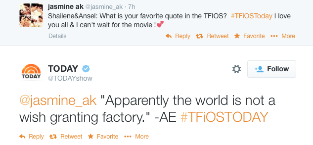 TFIOS is also Today Show's Book Club Pick. You can join the discussion of the book using the hashtag #TFIOSTODAY.